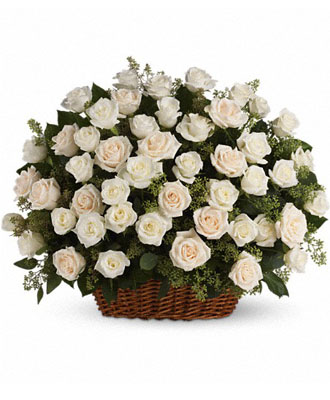 Les roses blanches sont un choix populaire pour les fleurs de sympathie car elles représentent la spiritualité, la sympathie et le véritable amour. Les roses crème de ce panier ajoutent également à sa beauté et transmettent la pensée. En envoyant le panier de roses abondantes, vous montrez que vous vous souvenez de la famille et des amis de l'âme disparue pendant cette période difficile.